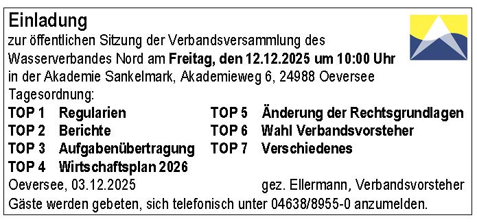 Einladung zur öffentlichen Sitzung der Verbandsversammlung